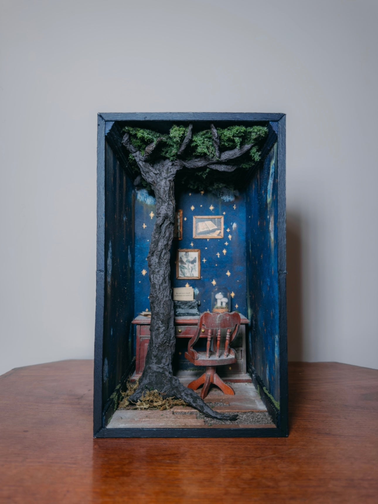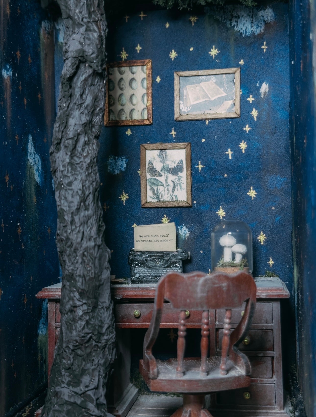 A lot of this book nook is customisable. You can request your favourite quote to be on the typewriter paper, and up to three constellations to be on the walls. Keep an eye on your emails once you place your order and I will be in touch to discuss what you would like